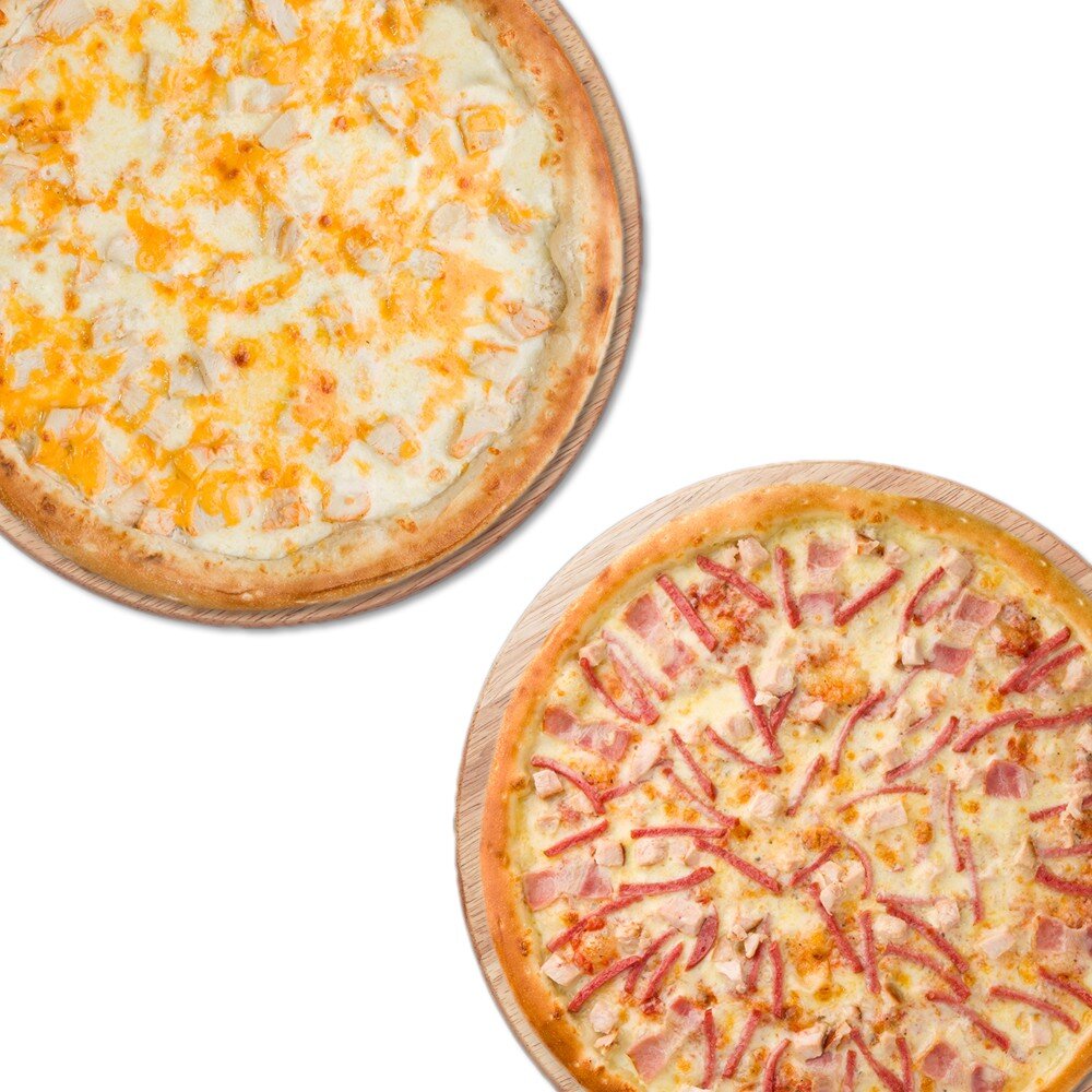 Пицца Нежный цыплёнок, Пицца Три мяса (диаметр 30см на тонком тесте).