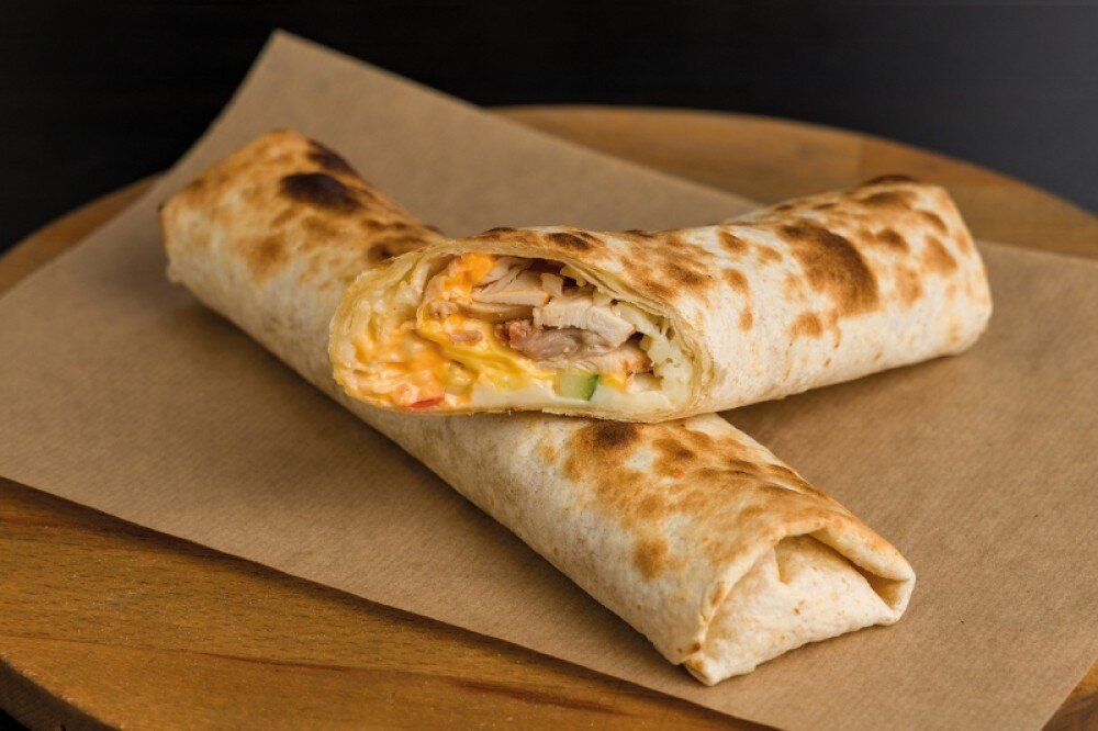 Ролл с сочным куриным филе, томатами, свежими огурчиками, сыром чеддер, сыром моцарелла и нежным сырным соусом в тонкой сырной лепешке.